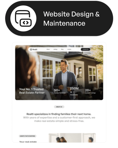 You're busy showing homes and closing deals. Let us handle your online presence, automate your follow-ups, and keep your pipeline full — all in one place.